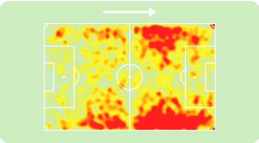 Mas, em termos animadores, podemos ver que já está presente, no mapa de calor de Renato, a semente da ideia de Diniz: ele não se prende, de fato, a posições determinadas, flutuando em todos os espaços do campo, mesmo que não o faça com a mesma frequência que Ganso. O que, de fato, não se pode esperar muito dele é a pisada na área, tal qual é proporcionada por Arias. Por isso, torna-se claro que seu papel se aproximará muito mais do estilo de jogo de Ganso, focando-se em um jogo mais centralizado e com ampla movimentação e liberdade para buscar a bola vindo de trás e pegar a bola na entrada da área.