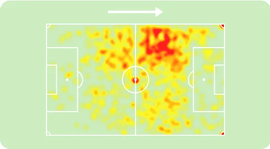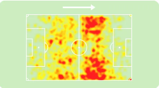 Note como Hugo se mostra como um jogador com mais imposição física que Fábio Santos: busca mais duelos defensivos e tem maior precisão nos desarmes. Além disso, também avança bem nas interceptações e, em comparação com laterais, domina nas bolas aéreas (de acordo com o FBREF, ele estaria entre os 10% laterais com mais duelos aéreos vencidos dentre várias ligas). Ou seja, defensivamente Hugo parece ser bem completo, unindo a disposição de Bidu com a leitura de jogo de Fábio. Isto já seria um baita avanço para a composição de elenco porque garante uma adaptação melhor de seus companheiros ao seu estilo, uma vez que, quando Bidu e Fábio revezavam posições, era nítido que a equipe sofria com seus diferentes estilos. Hugo pode ser uma figura mais maleável neste sentido e garantir maior estabilidade para o time.