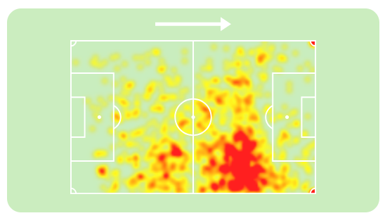 Everton se consolidou na equipe rubro-negra jogando como um falso ponta pela direita, como podemos ver em seu mapa de calor abaixo: