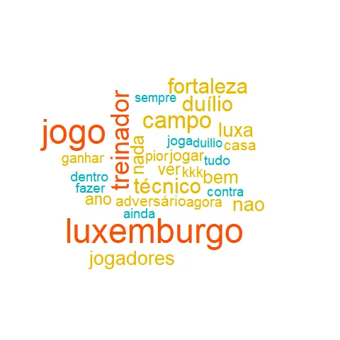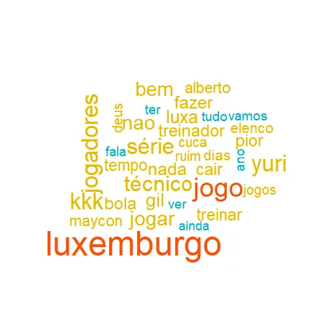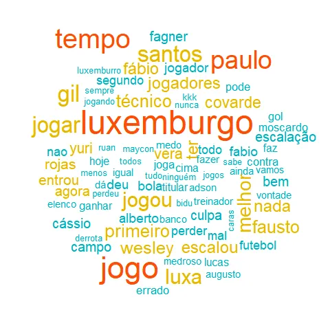 Destaque para as palavras “covarde”, “medroso”, “escalou” e “escalação” junto com “mal” e “errado”, assim como “jogou” e “nada”, além da famosa alcunha “luxemburro”, assumidamente temida pelo próprio treinador. Entretanto, Luxemburgo não foi o único criticado pela torcida: Gil, Fábio Santos, Fausto Vera, Yuri Alberto, Fágner e Rojas foram citados negativamente, enquanto Wesley foi elogiado e se questionou a sacada de Moscardo da equipe. A torcida não ficou nada contente com este jogo! Se nosso modelo fosse melhor, certamente teríamos um número ainda pior para o treinador.