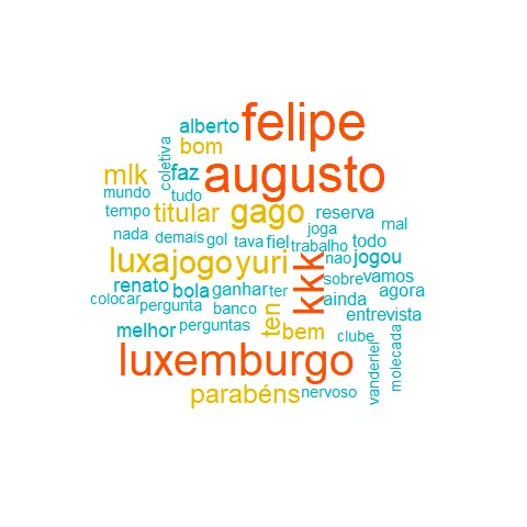 A coletiva mais comentada foi após o jogo contra o São Paulo, no dia 17/08, com 755 comentários, que selou a eliminação da equipe da Copa do Brasil. A sua nuvem de palavras é a seguinte: