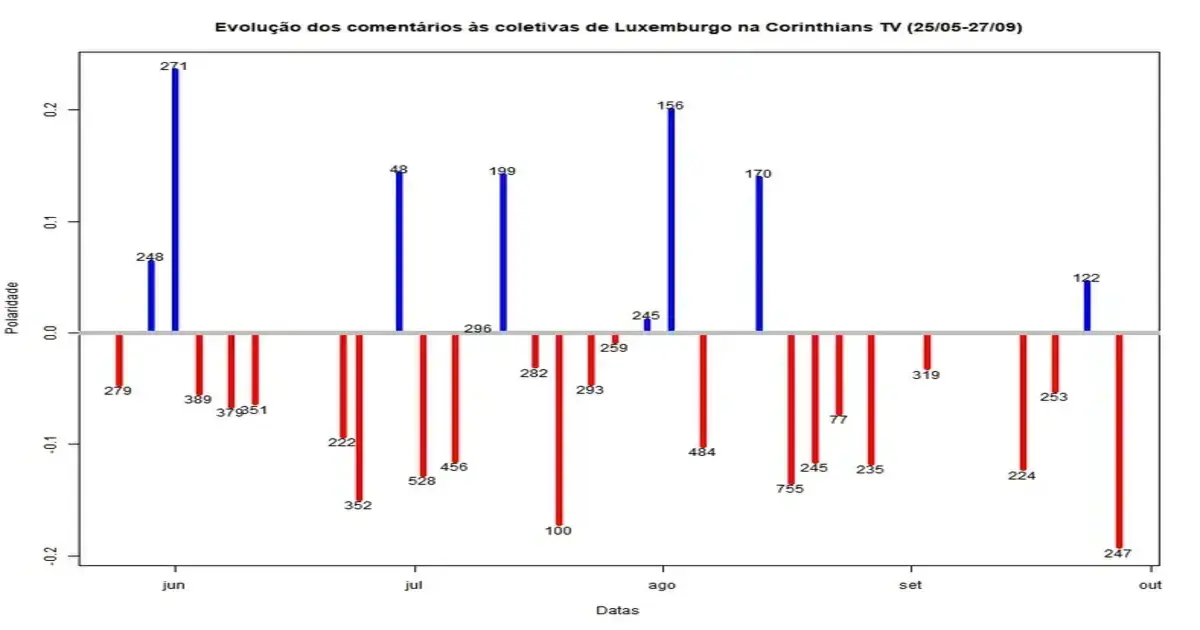 O objetivo deste texto, portanto, será mostrar as reações da torcida à gestão de futebol de Luxemburgo no Corinthians. Como já falamos, foi uma verdadeira montanha russa de emoções, com um futebol que o torcedor corintiano não está tão acostumado. Assim, podemos tirar algumas lições destes comentários para entender o que os torcedores querem.